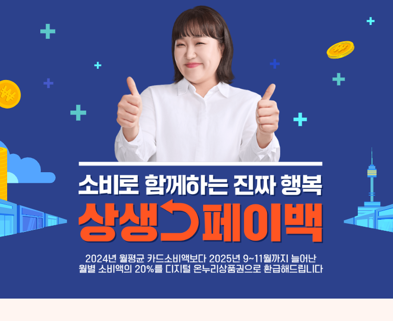 상생페이백은 소비를 늘릴수록 혜택이 돌아오는 정책입니다. 작년보다 카드를 조금 더 쓰는 것만으로도 현금처럼 쓸 수 있는 온누리상품권을 받을 수 있으니, 가계에도 도움이 되고 전통시장과 소상공인에게도 힘이 됩니다.