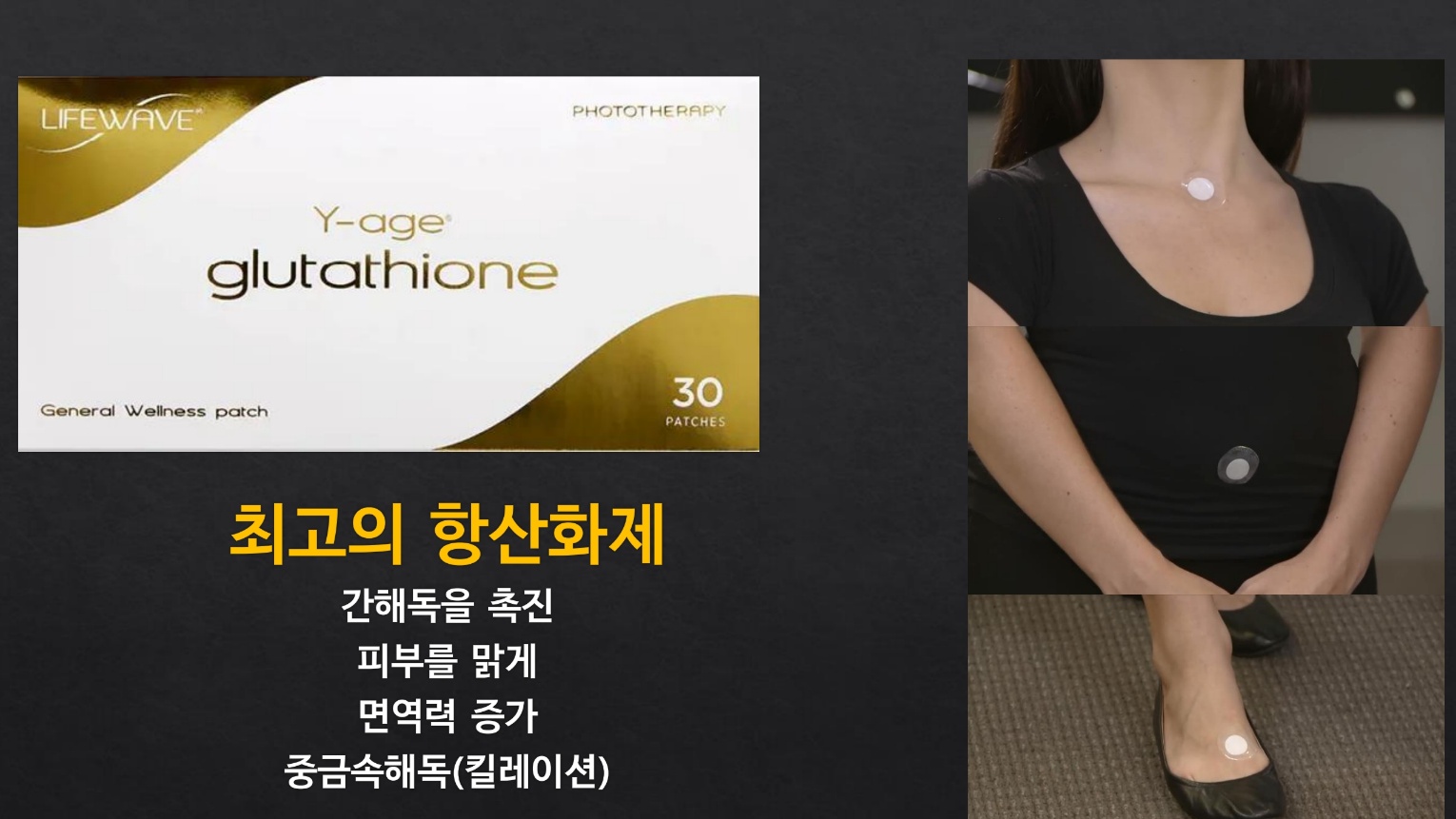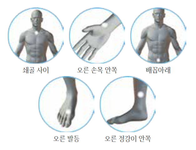 주 5-7일간 그림에 표시된 위치에 돌아가면서 와이-에이지 글루타치온 패치를 사용합니다.