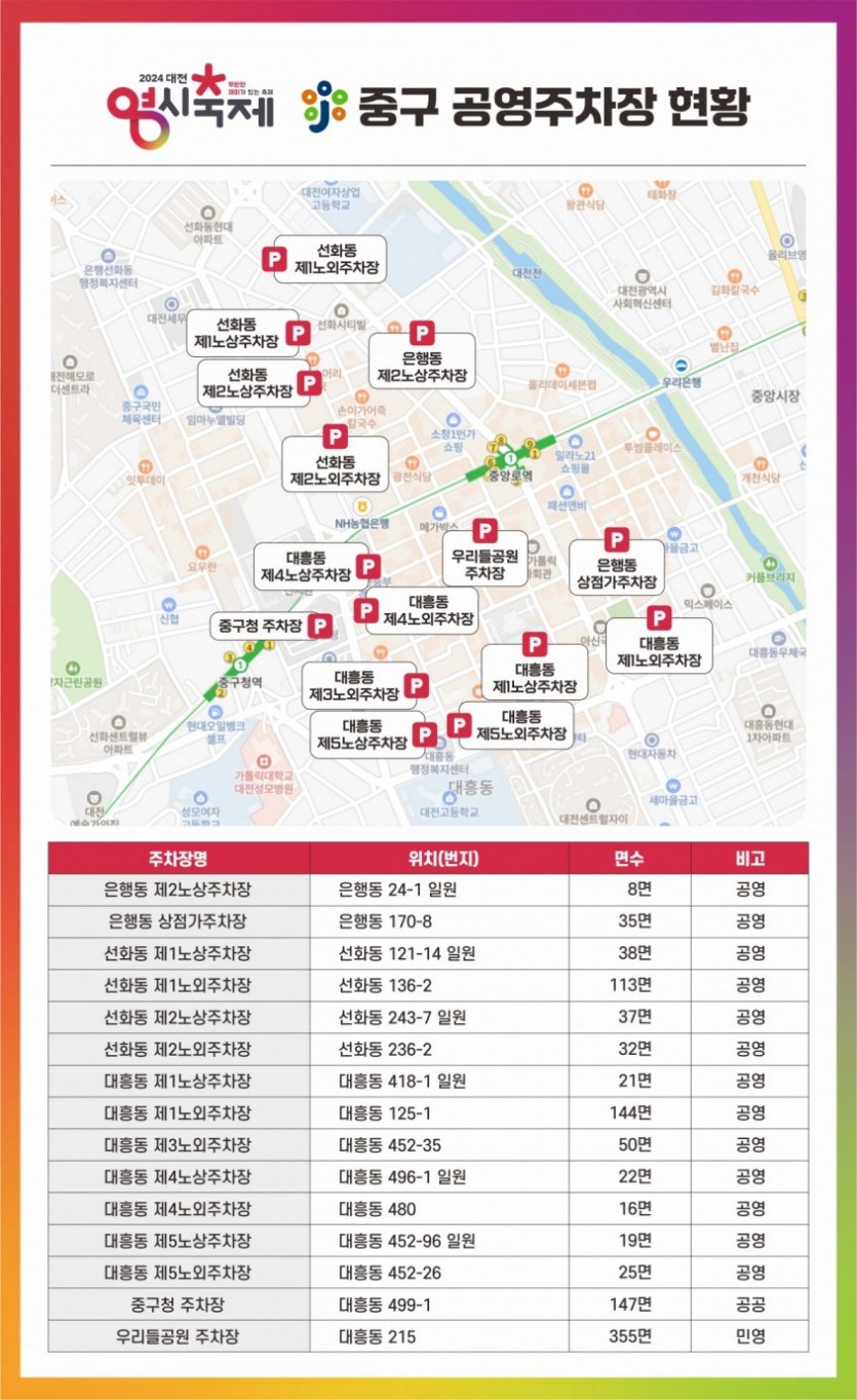영시축제를 위해 행사장 주변 주차장을 알아봤습니다.