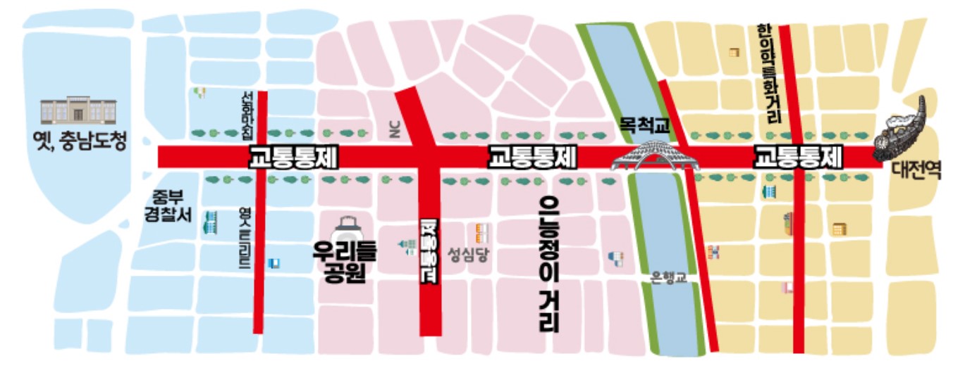 교통통제 안내 기간: 2024. 8. 7.(수) 05시 ~ 8. 18.(일) 05시 ✅ 통제구간 중앙로(대전역~옛 충남도청) 대...