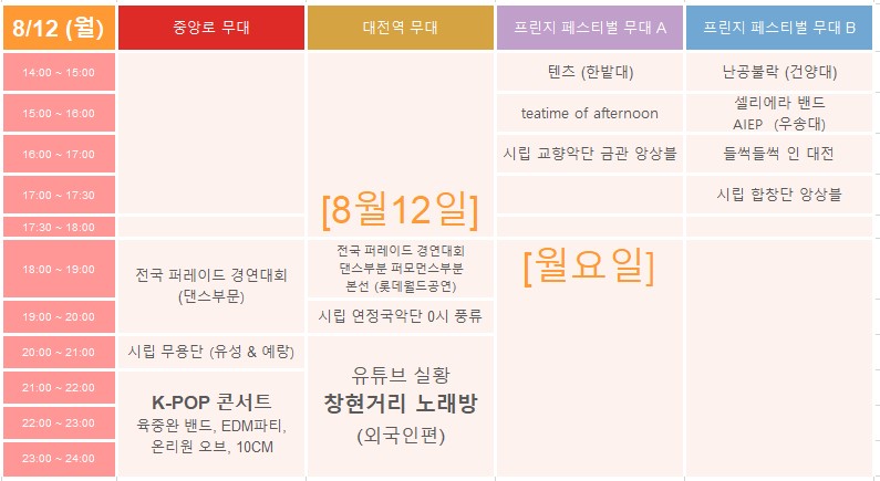 0시축제 [8월12일, 월요일] 행사 프로그램*영시축제 (0) | 2024.08.06 |