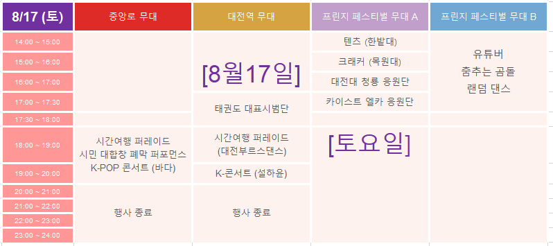 | 2024 대전 0시축제 라인업 개막식 교통통제 순환버스 축제일정 확인하기* 영시축제 (0) | 2024.08.08 |