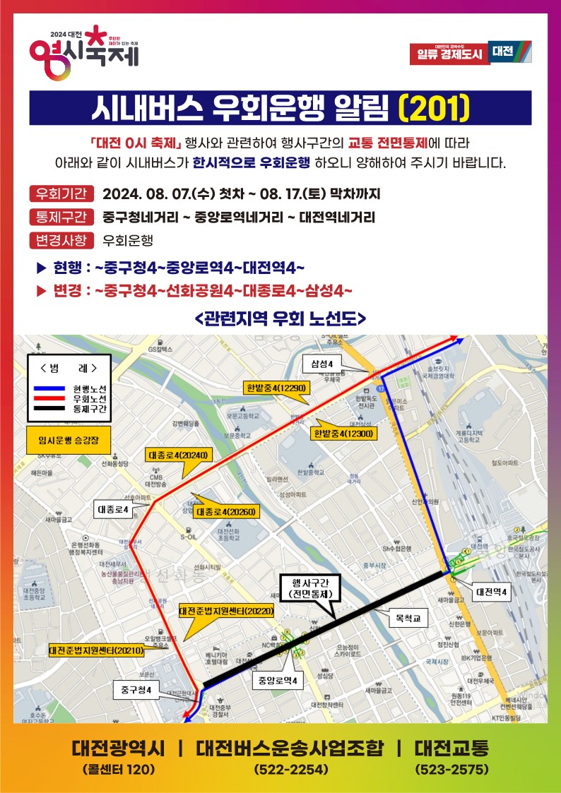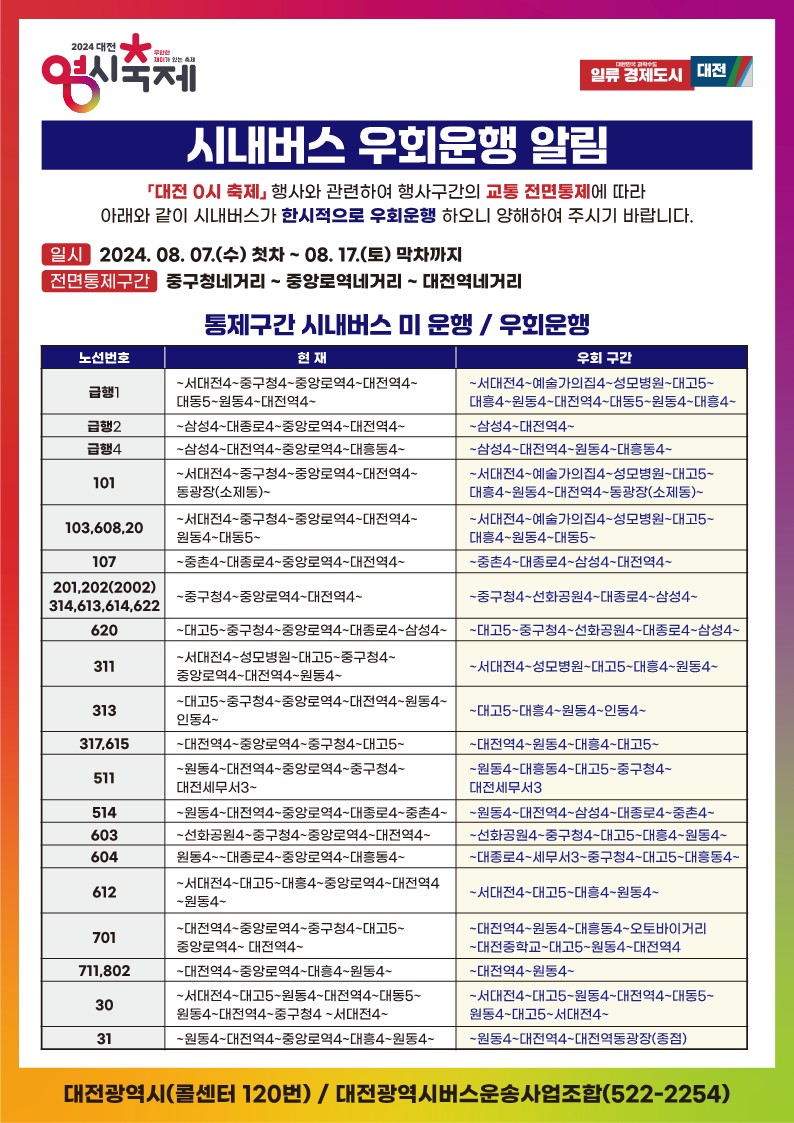 0시축제 교통통제 시내버스 우회노선 안내*영시축제